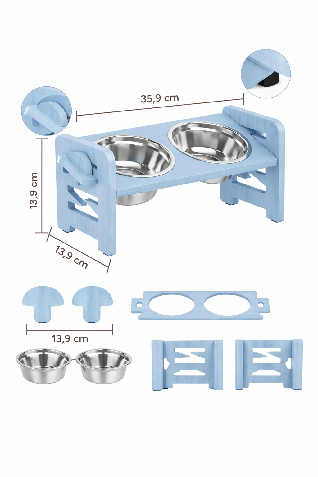 Matériaux : Support robuste + bols en acier inoxydable